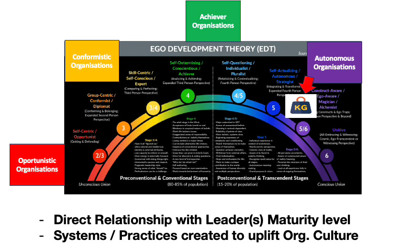 Every organisation has developmental strata (maturity bubbles) within it — some teams live in Achiever logic, others in Conformist comfort, a few in Autonomous awareness. Yet overall, there exists a center of gravity — the prevailing developmental altitude that defines the organisation’s default response.