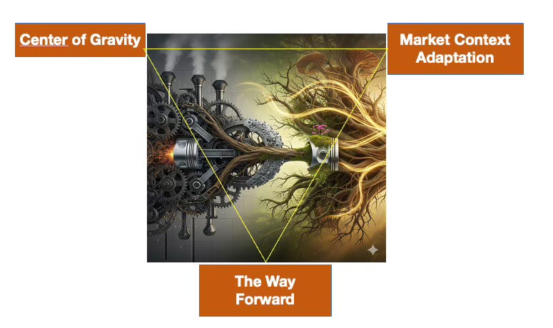 It reads the market not as an adversary but as an ecosystem — a field of mutual adaptation. Customer needs, technological change, and societal shifts are not “external pressures” but signals of evolution. Thus, strategy becomes ecology: sensing where business wants to move next and partnering with that movement.