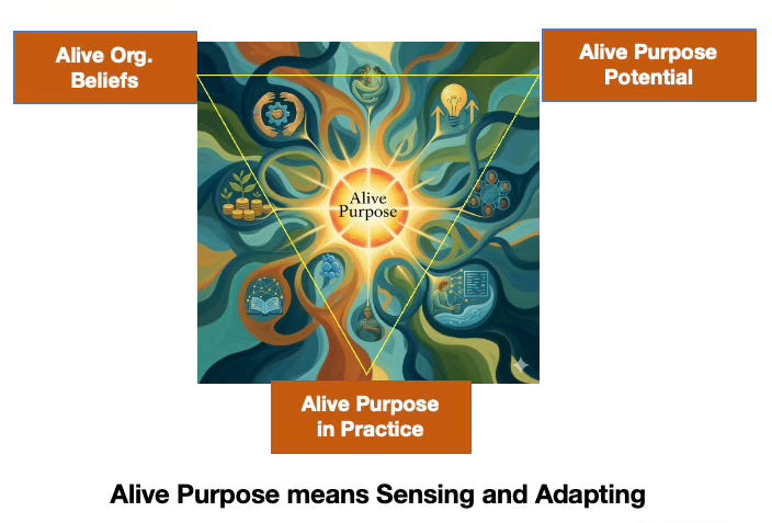 Alive Purpose transforms purpose from declaration to dialogue, from doctrine to dance.