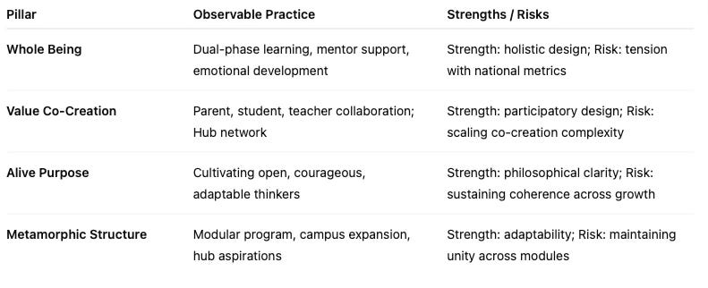 Thus, Helikon presents a strong candidate for transformation toward aliveness in education — mixing structure and experimentation, autonomy and coherence, academic and holistic child development.